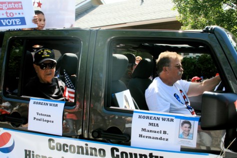 FLAGSTAFF — After a while it was hard to tell who was having more fun, the parade goers standing or seated on the downtown Flagstaff sidewalks or Korean War veteran Timoteo Cordova as he waved a flag or gave the thumbs up from the back of the Jeep as part of the Coconino Hispanic Advisory Council (CHAC) entry in the 2018 Greater Flagstaff Chamber of Commerce 4th of July Parade.