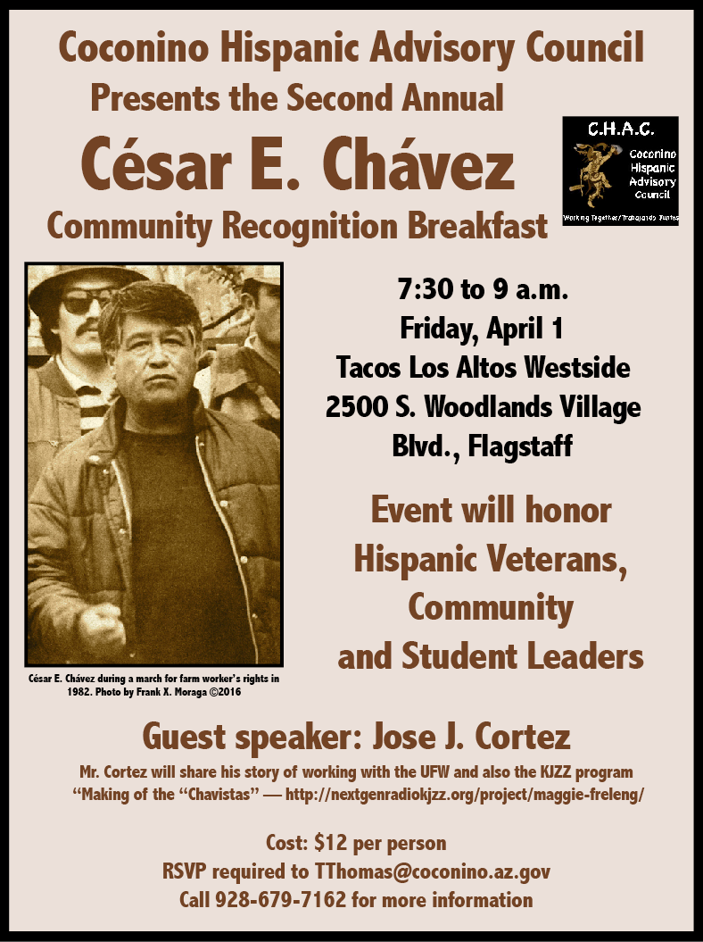 FLAGSTAFF— Area Purple Heart recipients and their family members received a well-deserved community recognition, while a representative from the Cesar Chavez Foundation recounted the organization’s past while outlining the steps to share the vision César E. Chávez to a new generation, during the fifth annual César E. Chávez Community Recognition Breakfast held Friday, March 29, 2019 at American Legion Mark A. Moore Post No. 3, Flagstaff.