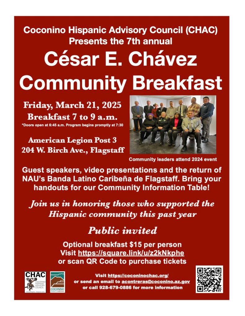 FLAGSTAFF — With a mixture of fiery speeches, presentations featuring the importance of telling everyone’s stories and a commitment to refusing to be erased from the history books (video clip*), the 7th annual Coconino Hispanic Advisory Council’s (CHAC) César E. Chávez Community Breakfast took on a more feisty tone this year.